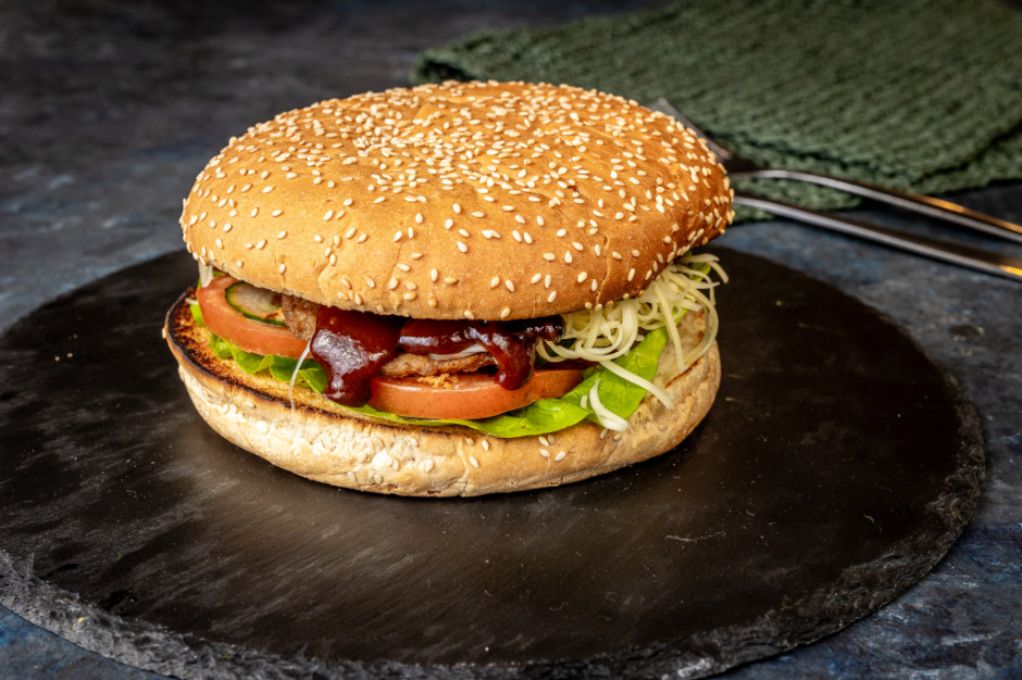 Barbecue szósz, Extra marhahús pog, Füstölt sajt, Grill hagyma, Paradicsom, Uborka