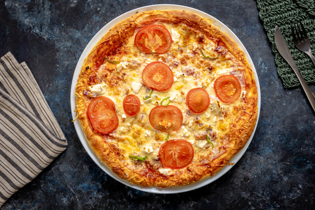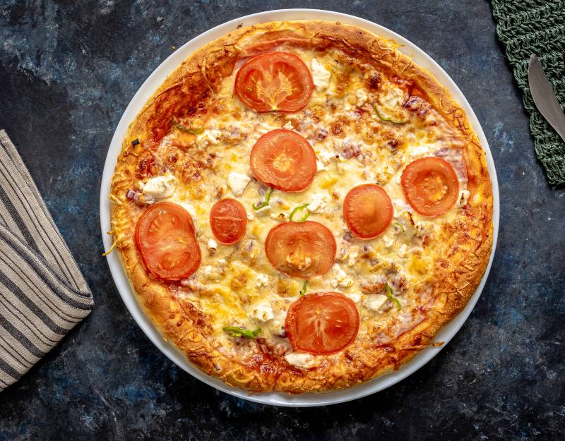 Paradicsomos alap, Erő, Feta sajt, Lilahagyma, Paradicsom, Sajt, Sonka