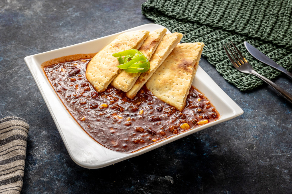 Chilis bab házi pizza kenyérrel