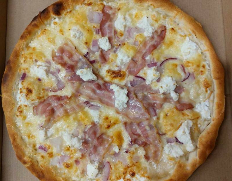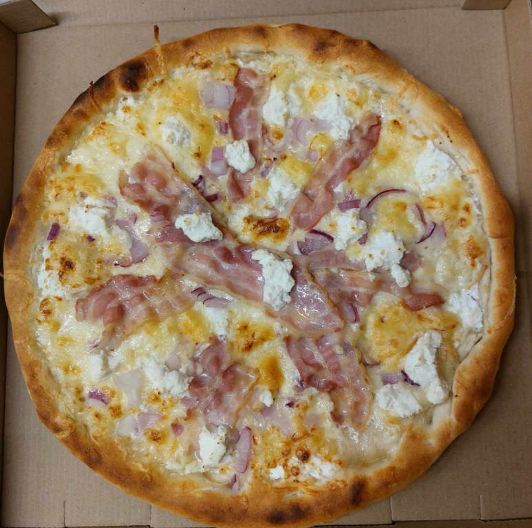 Tejfölös alap, Bacon, Füstölt sajt, Juhtúró, Lilahagyma