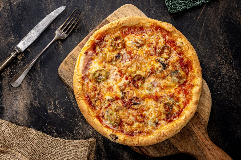 Paradicsomos alap, Erő, Gomba, Sajt, Sonka, Szalámi