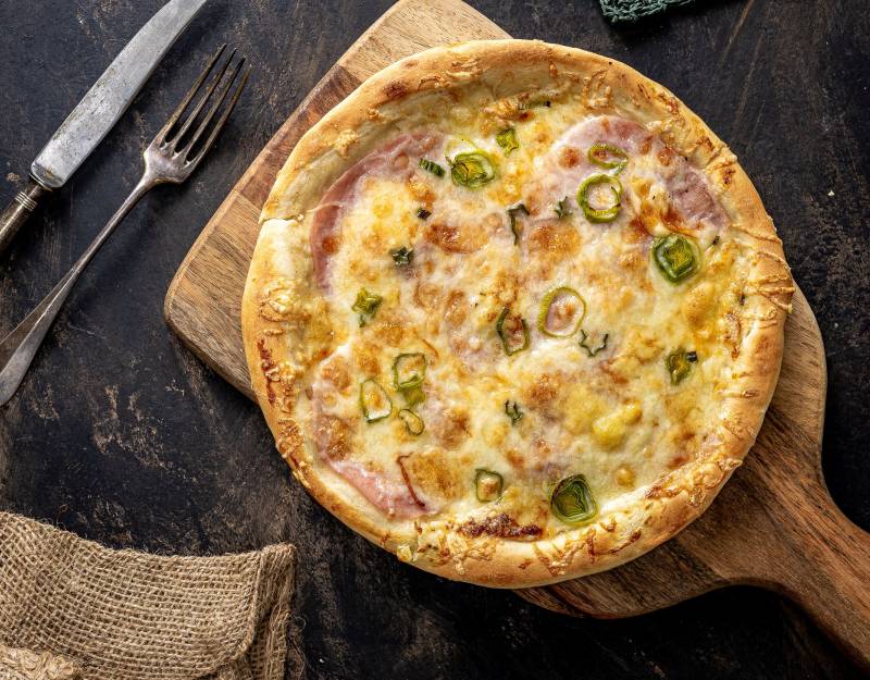 Tormakrémes alap, Füstölt sajt, Póréhagyma, Sonka