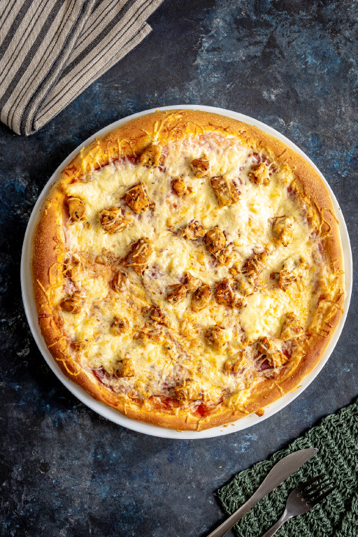 fokhagymás tejfölös alap, Bacon, Csirkemell, Lilahagyma, Sajt