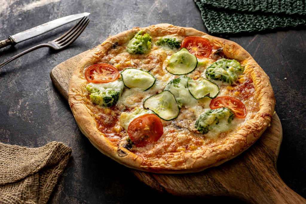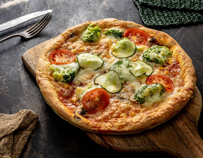 Paradicsomos alap, Brokkoli, Gomba, Kukorica, Paradicsom, Sajt, Uborka